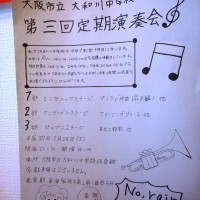2015年3月28日(土)に 大阪市立大和川中学校で 第三回定期演奏会が開催されるそうです[14:00開演] 御近所さまはぜひ!